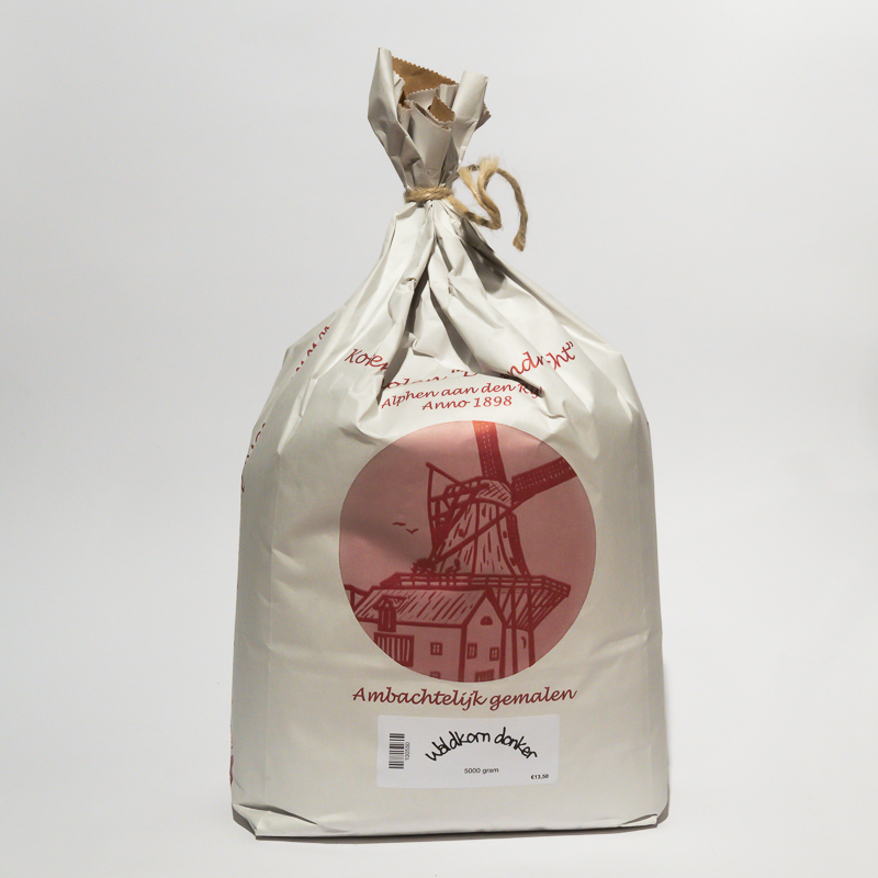 Broodmix voor Waldkorn donker. Met tarwebloem, ambachtelijk gemalen en gemengd op de Korenmolen De Eendracht te Alphen aan den Rijn.